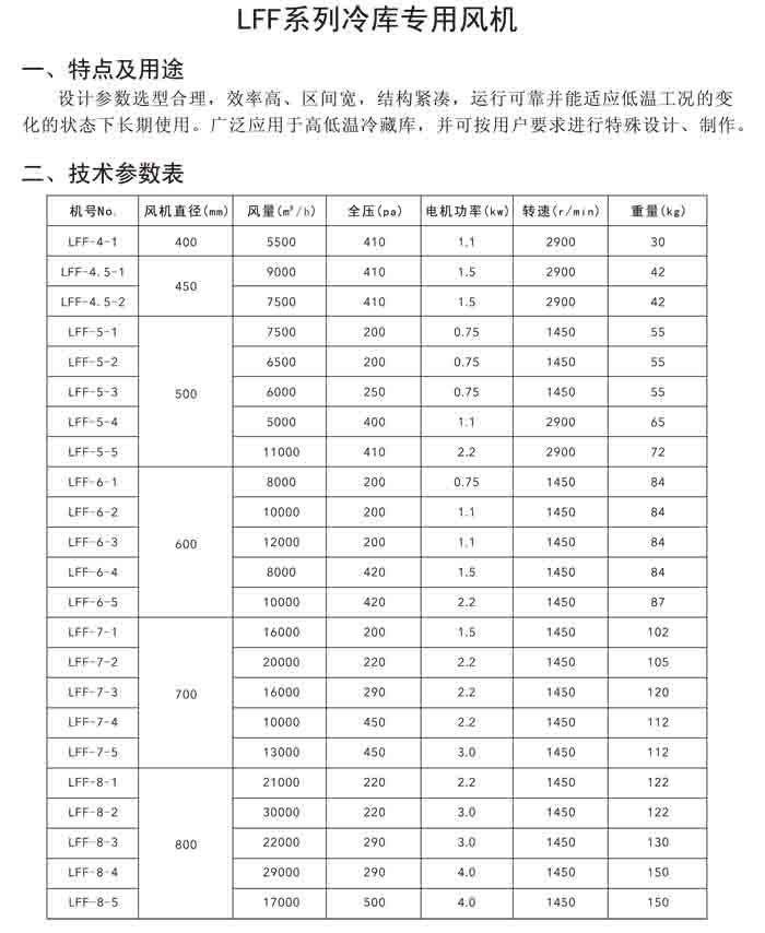 八、LFF 系列冷庫專用風(fēng)機(jī)